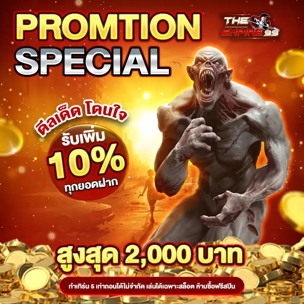 โปรโมชั่นคือจุดเด่นสำคัญที่ทำให้ผู้เล่นเลือกสมัครกับ THE EMPIRE 99 เพราะที่นี่มีการอัปเดตสิทธิพิเศษตลอดเวลา ไม่ว่าจะเป็นโบนัสต้อนรับสำหรับสมาชิกใหม่ โปรโมชั่นฝากครั้งแรกที่เพิ่มเครดิตให้อัตโนมัติ หรือกิจกรรมแจกเครดิตฟรีสำหรับผู้เล่นประจำ ทุกโปรมีเงื่อนไขที่เข้าใจง่าย ไม่ซับซ้อน และสามารถกดรับได้ด้วยตนเองผ่านระบบออโต้ สิ่งเหล่านี้ช่วยให้ผู้เล่นมีโอกาสเริ่มต้นเดิมพันด้วยทุนที่มากขึ้น เพิ่มโอกาสในการคว้ารางวัลใหญ่ การเลือกเล่นสล็อตกับ THE EMPIRE 99 จึงคุ้มค่ามากกว่า เพราะโปรโมชั่นที่แจกจริง ใช้ได้จริง และหมุนเวียนมาอย่างต่อเนื่องเพื่อให้สมาชิกได้รับความคุ้มค่าในทุกการเล่น